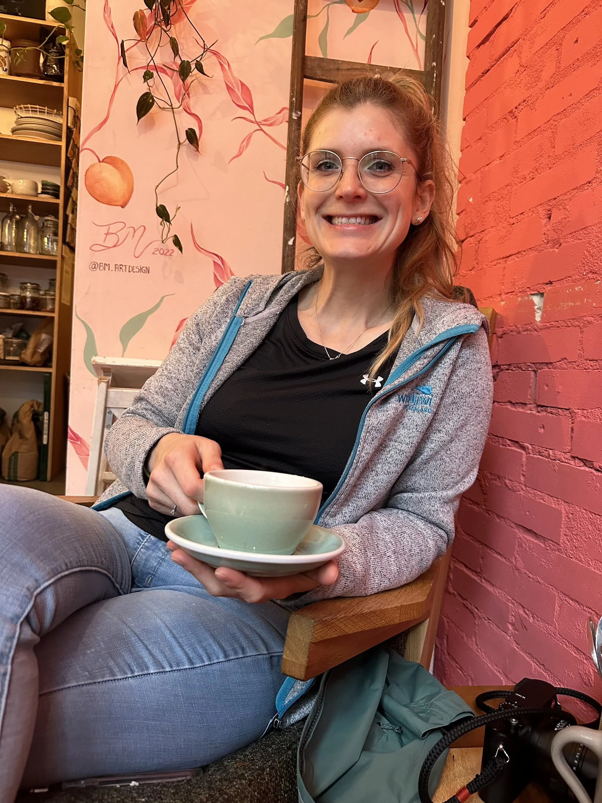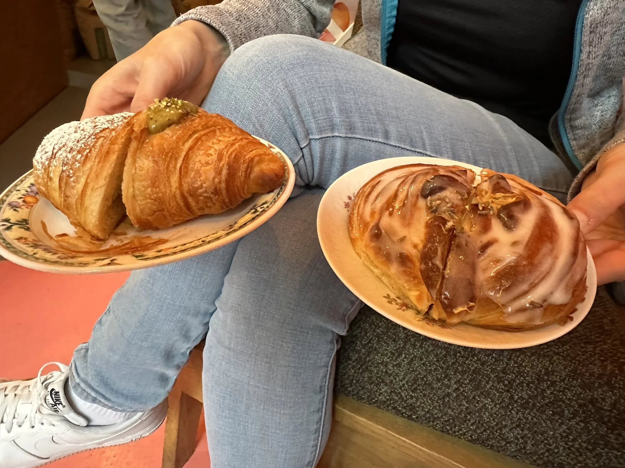 Wir haben eine kleine Pause in einem Café eingelegt. Super nette Leute dort und sehr leckere Sachen! Wir haben uns für ein Pistazien-Croissant und eine Schneckennudel mit Lavendelbutter entschieden. Das ist jetzt nichts für die schlanke Linie oder die Gesundheit, aber es war lecker 😅.