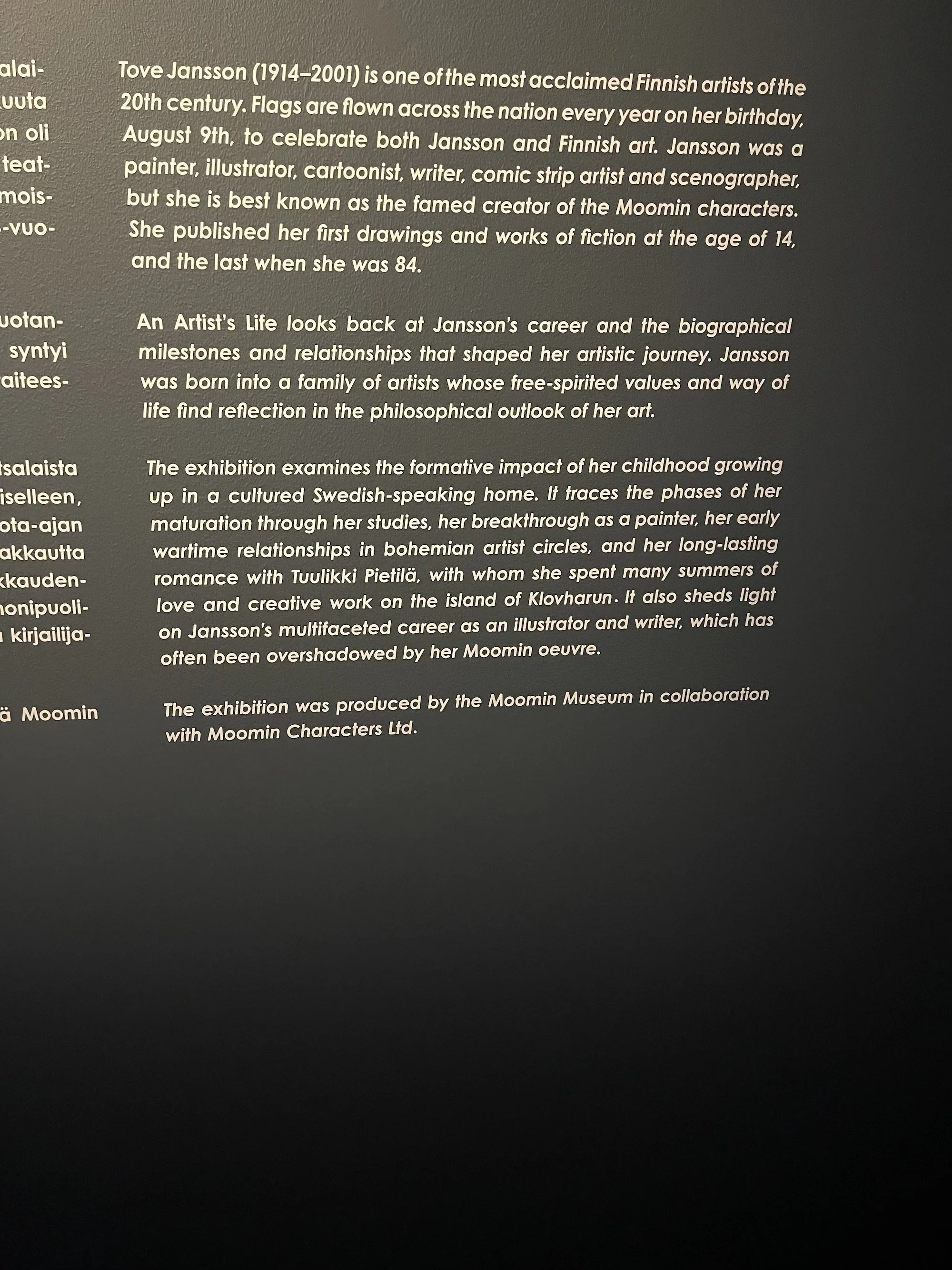 Toll an dem Museum ist auch, dass man viel über Tove Jansson als Mensch lernt, was sie und die Moomins nochmal cooler macht 😊.