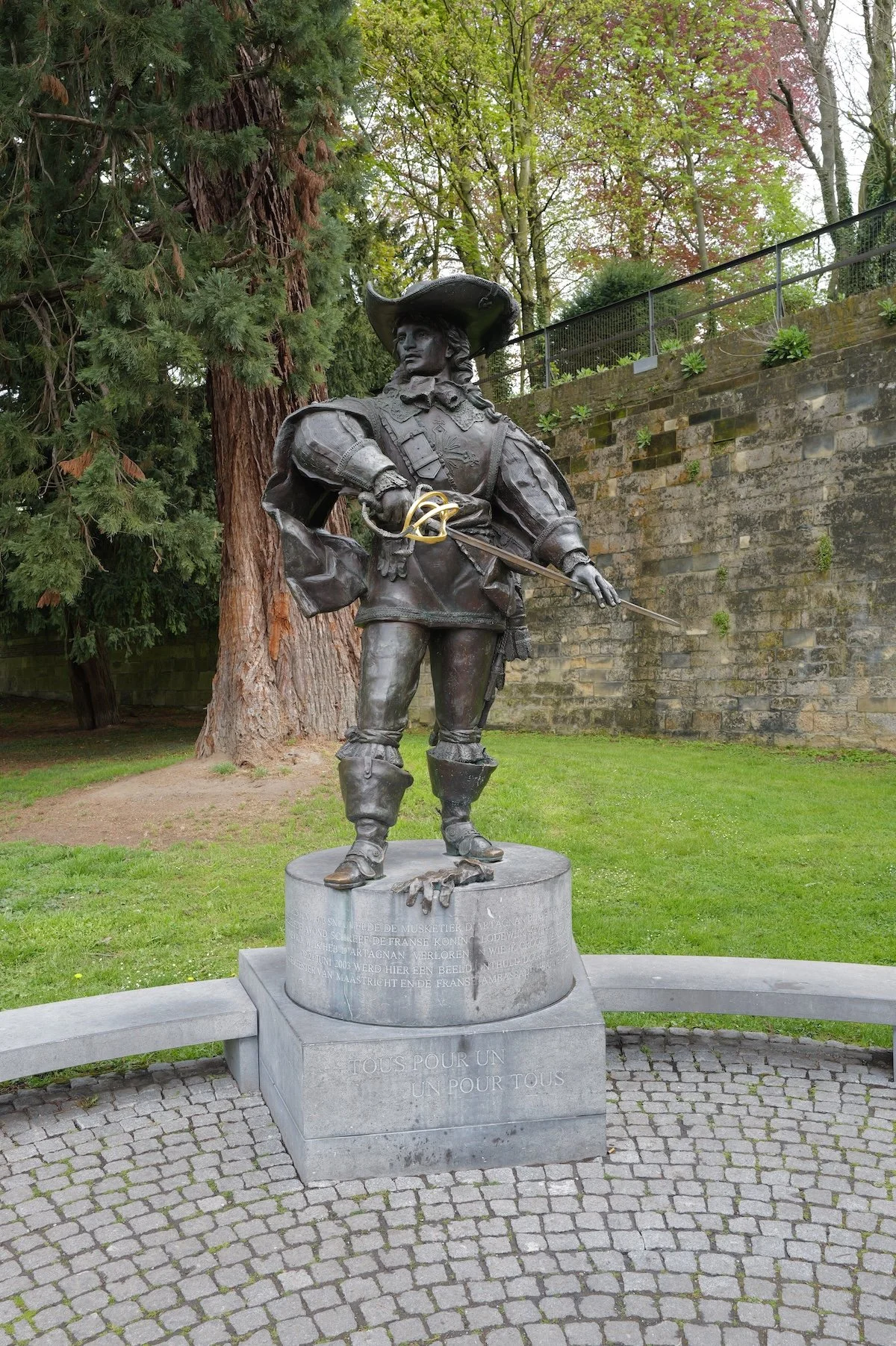 Und dort eine Statue von d'Artagnan, einer der Musketiere. Er ist dort bei der Belagerung der Stadt im 17. Jahrhundert gefallen.
